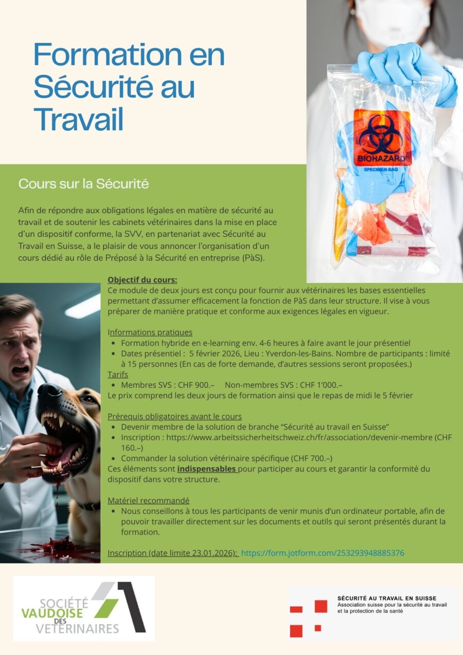 a définirJRFAMV: poste à repourvoir pour la prochaine JRFAMV agendée le 30 septembre 2026. Le poste est proposé aux vétérinaires et aux AMVs. Une indemnisation est prévue. Un cahier des charges actualisé fait état […]